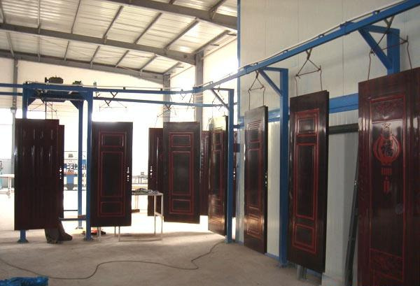 办公室木门喷涂设备采用专用五吨悬挂链输送线,采用变频控制,线速为0--6m/min;