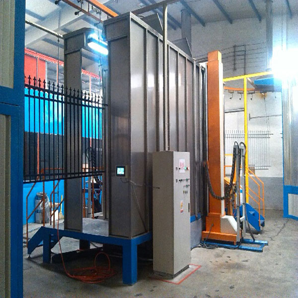 自动喷粉方式采用上下往复机带动自动喷粉枪,对产品进行自动喷涂,