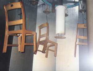 木椅DISK静电喷涂设备由人工上下工件区、工件输送线、除尘系统、Ω型喷漆室、旋碟静电喷枪系统、上下往复机系统、供漆系统、洁净鲜风供给系统、废气排放系统、烘干炉、加热系统、冷却系统组成。