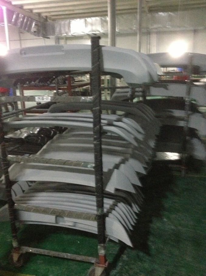 汽车导流板机器人涂装生产线采用积放输送链输送线,将导流板输送到每一道工序上,无需人工输送。