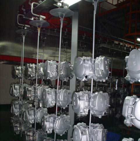 人工上下件、自动输送线、手动除尘、预热除湿处理、静电自动除尘、喷涂机器人、自动喷涂系统、无尘喷涂室、漆雾排除系统、恒温恒湿送风系统、高效均压箱、产品表面留平、烘干隧道炉、自然风冷却系统、PLC中央控制系统、废水废气处理系统。