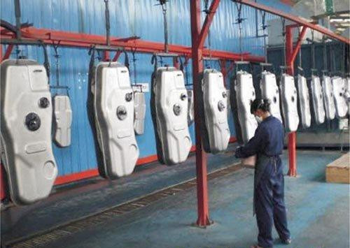 人工上件——手动除尘——自动静电除尘——机器人自动喷涂——烘干炉烘干——自然冷却——人工下件