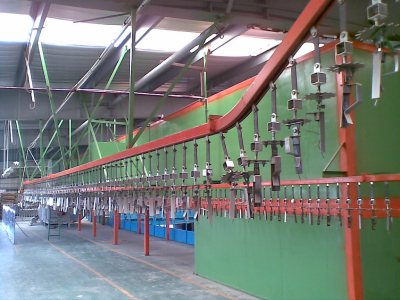 五金件自动喷涂设备采用悬链输送线,将产品输送到每一道工序上。